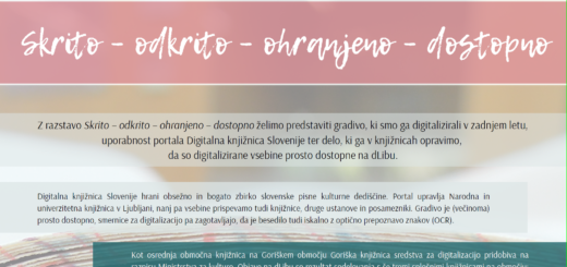 3. decembra obeležujemo Ta veseli dan kulture ter vas vabimo k ogledu razstave Skrito – odkrito – ohranjeno – dostopno, na kateri predstavljamo gradivo, digitalizirano v preteklem letu, ter portal Digitalna knjižnica Slovenije. Vse...