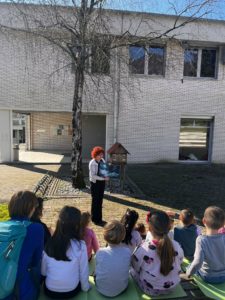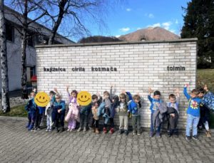 Otroci iz skupin »Zajčki«, »Ptički« in »Barvice« so v okviru kulturnega dne v Tolminu obiskali Knjižnico Cirila Kosmača Tolmin, kjer jih je prijazna knjižničarka Polona popeljala v svet knjig in pravljic. V Pravljični sobi so raziskovali knjižnične police in spoznavali delovanje knjižnice, v atriju, obsijanem s pomladnim soncem, pa so prisluhnili zanimivi zgodbi o želvi, ki je odkrivala svet.