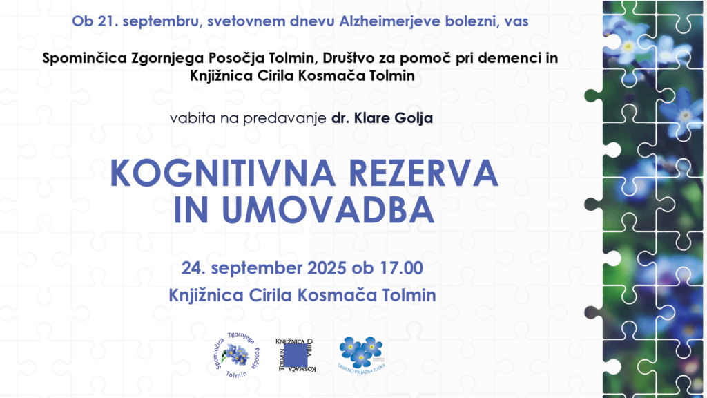 Predavanje bo izvedeno v okviru Demenci prijaznih točk, ki so bile leta 2021 vzpostavljene v knjižnicah v Tolminu, Kobaridu in Bovcu.
