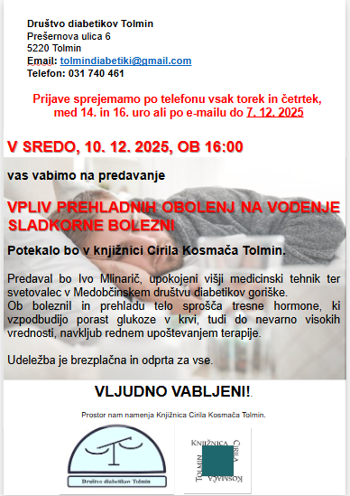 Skoči na glavno vsebino Vpliv prehladnih obolenj na vodenje sladkorne bolezni (Ivo Mlinarič) Vpliv prehladnih obolenj na vodenje sladkorne bolezni (Ivo Mlinarič) – Knjižnica Cirila Kosmača Tolmin