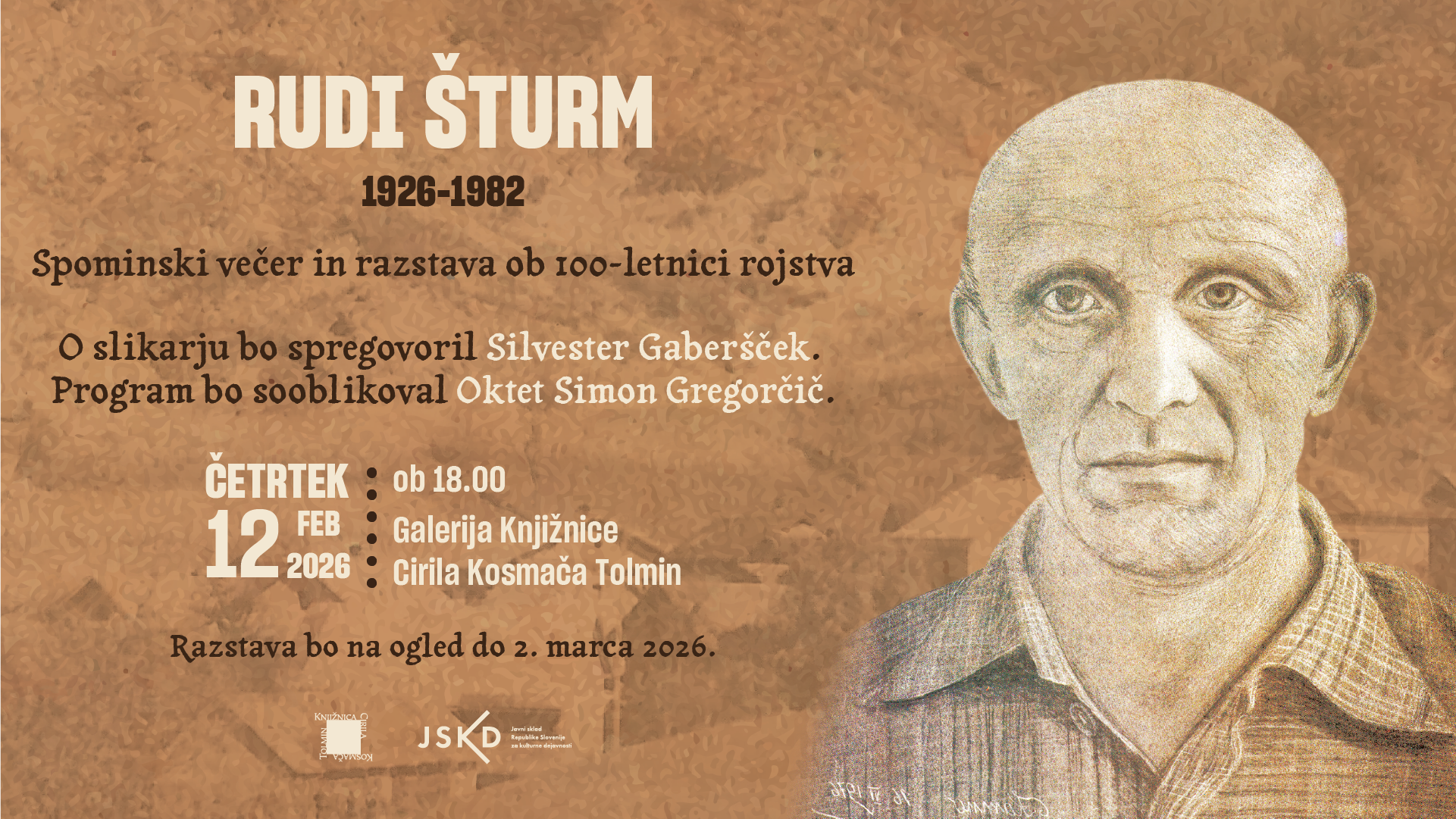 Skoči na glavno vsebino Rudi Šturm – Spominski večer ob 100-letnici rojstva Rudi Šturm – Spominski večer ob 100-letnici rojstva – Knjižnica Cirila Kosmača Tolmin