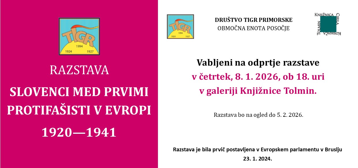 Podnaslov razstave: TIGR in BORBA – to je junaška zgodba o prvem organiziranem odporu proti fašizmu v Evropi