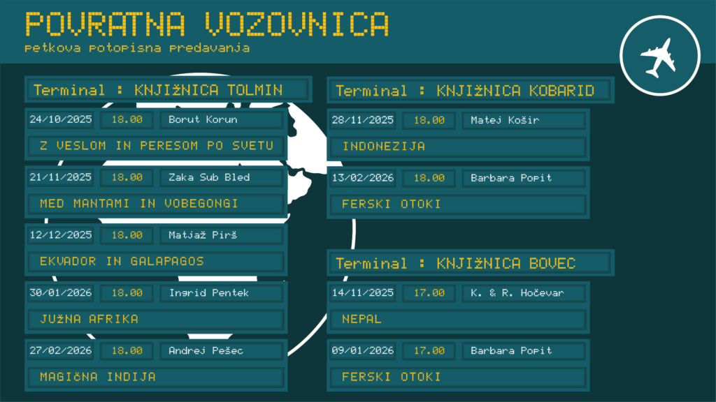V knjižnicah v Tolminu, Kobaridu in Bovcu se začenja nov ciklus potopisnih predavanj Povratna vozovnica.
