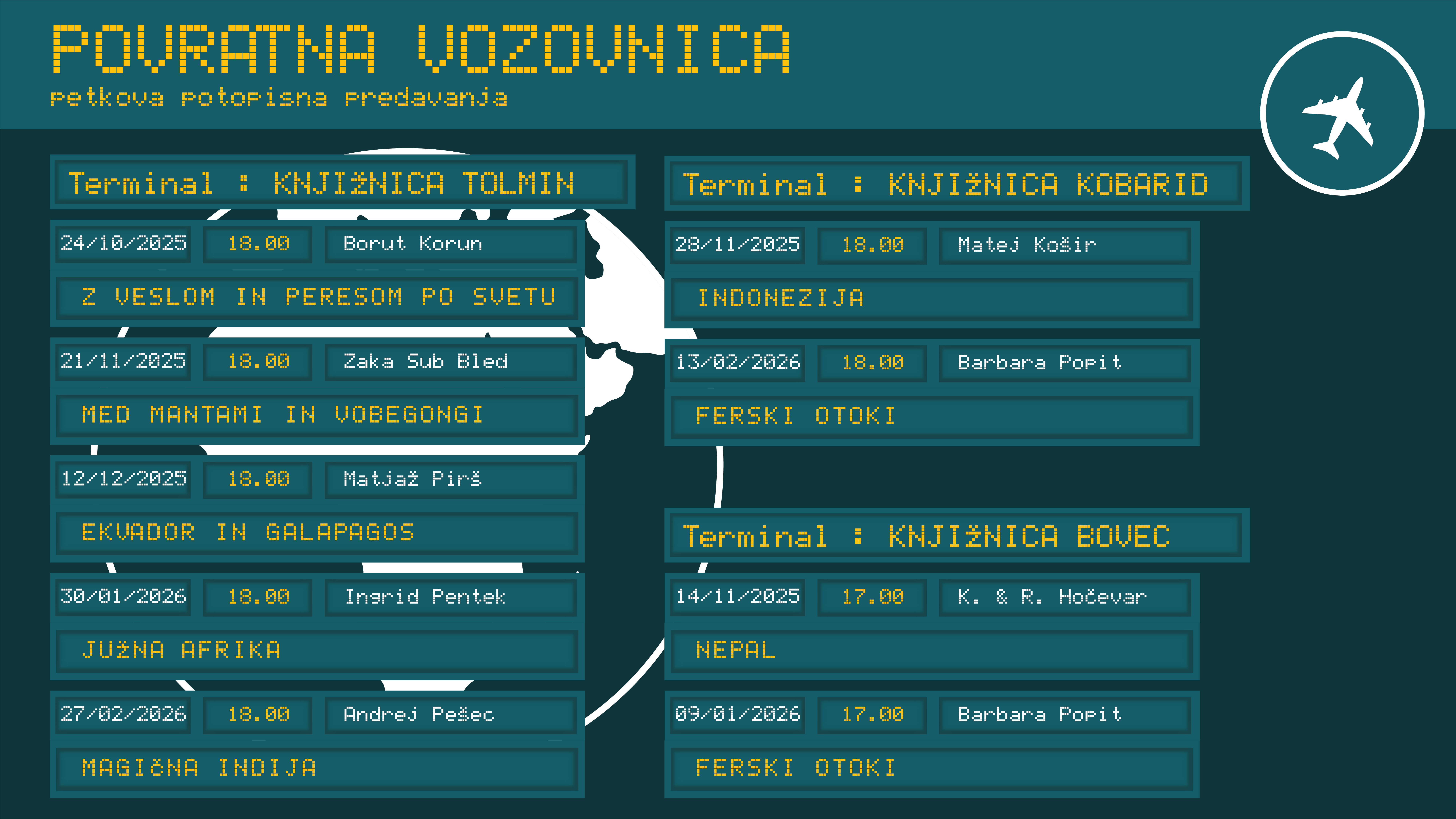 V knjižnicah v Tolminu, Kobaridu in Bovcu se začenja nov ciklus potopisnih predavanj Povratna vozovnica.